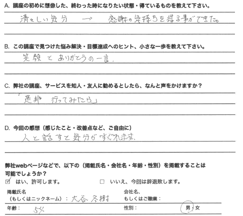 参加者のアンケート達