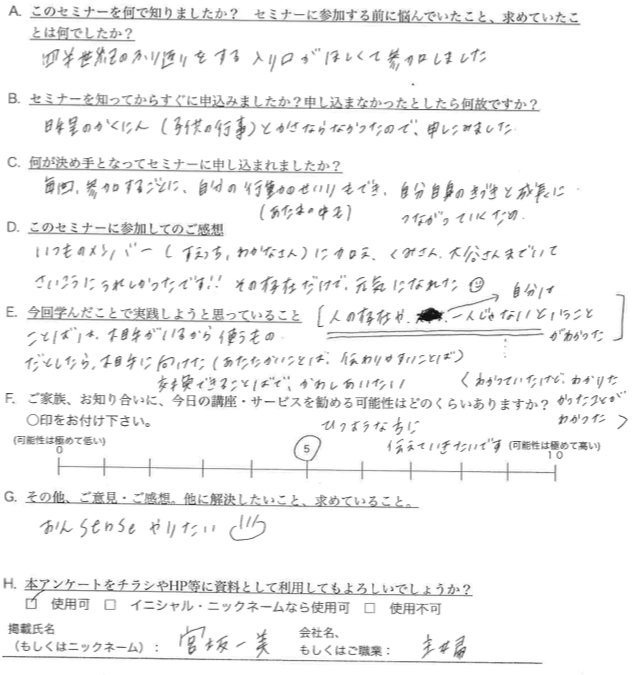 • Q:今回学んだこと、実践しようと思っていること。