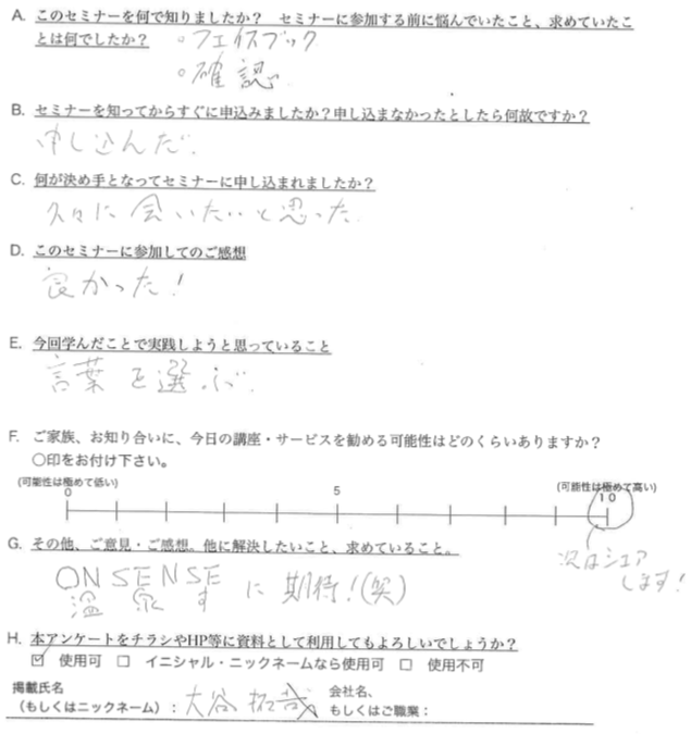 • Q:参加されての感想